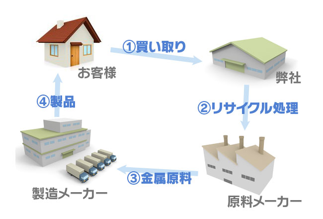 - ご家庭、工場などで不用になった金属屑等を弊社が買取